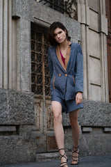 Feel relaxed, comfortable yet stylish in our Cyprus jacket. The feel of this jacket has a luxuriously soft hand which made of upcycled lyocell. The unique mandarin-like collar can be standing or laid flat. The collar, lapel and back belting are in a contrasting slinky caramel. The closure has a double-breasted look with 2 wooden buttons and easy welt pockets. For a pop, this jacket is lined in a contrasting slinky watermelon color.