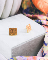elevate your everyday elegance with our chic etta earrings, a fusion of simplicity & sophistication. meticulously crafted by skilled hands, these understated studs are a celebration of clean lines, warm tones & enduring style — wear them as squares or diamonds.