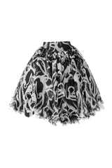 A billowy organza-tulle skirt with a wide waistband and original QUOD foliage print all over the flare.