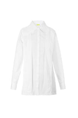 An oversized white cotton shirt in crisp poplin, complete with signature QUOD exposed seam panels on the front, sleeves, and exposed darts at the back.