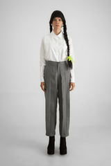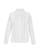 A white shirt in poplin with multiple functional plackets on the front.