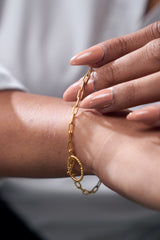 The Mystic's Link Bracelet is artisanally handcrafted in a thick layer of 22ct yellow gold plated recycled brass.