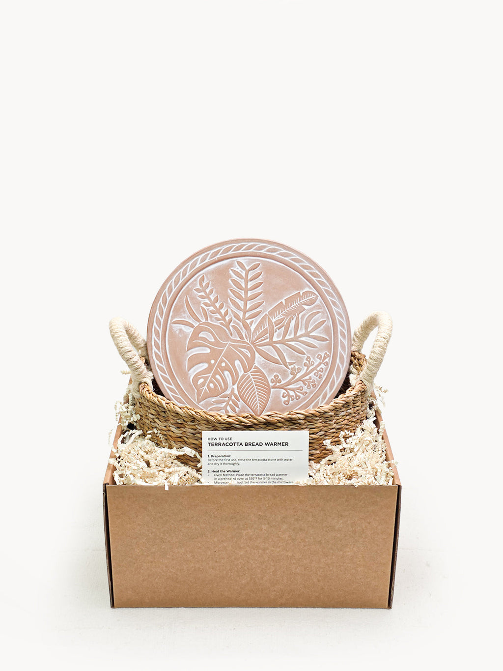 There’s nothing quite like the smell of warm bread on the weekend. Here, our terracotta plate has been engraved with plant design and cut to fit neatly into a round basket. This special bread warmer is naturally insulating, and the basket itself has been handwoven from sustainably grown seagrass. It’s the best gift item for anyone who loves bread!