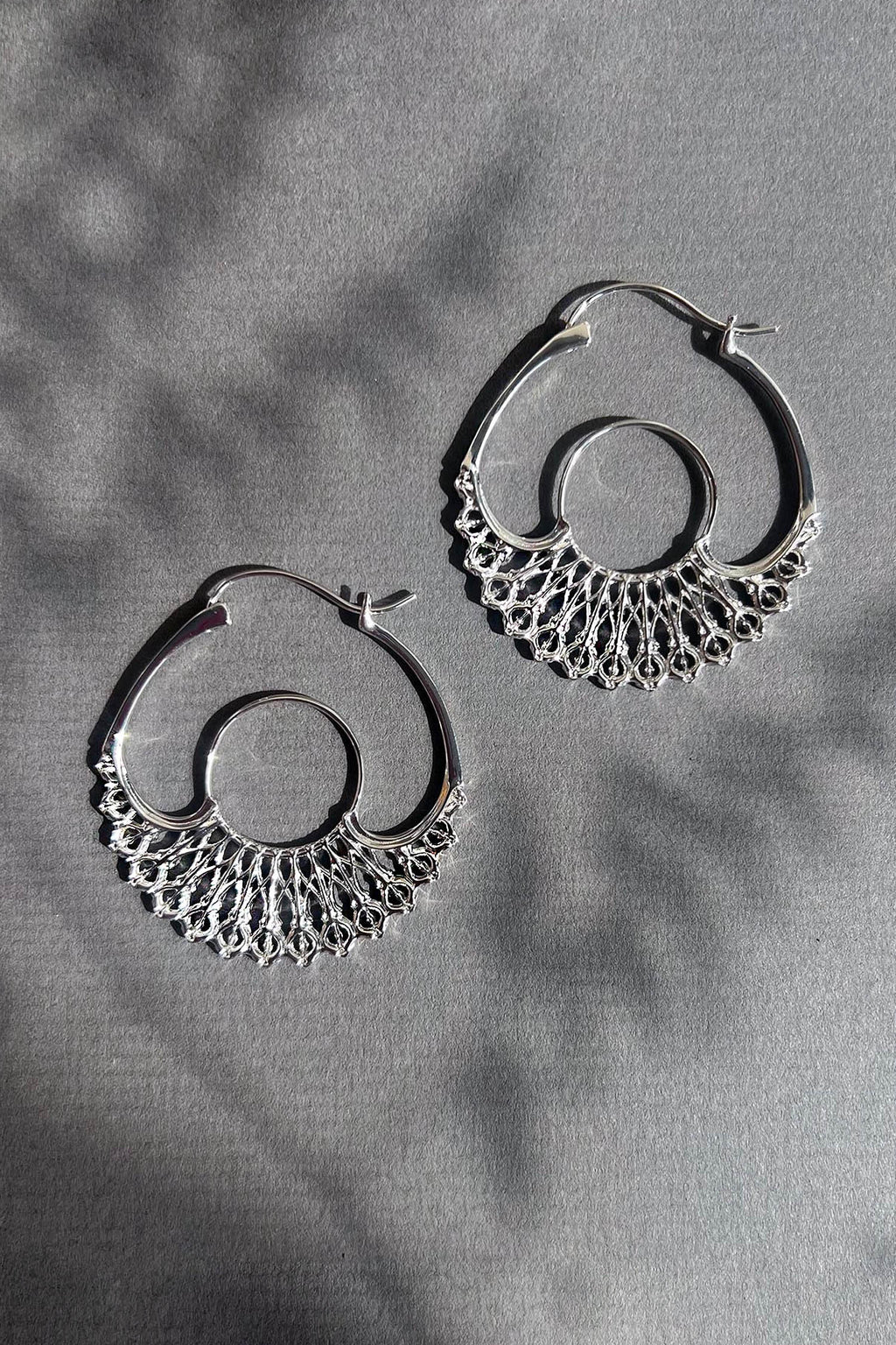 Cast from recycled brass, these hoops embrace our commitment to environmental consciousness. Each pair is meticulously plated with a heavy and hypoallergenic rhodium finish, ensuring a timeless allure that lasts.